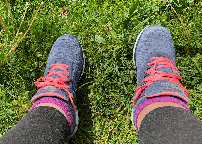 For a while, my biggest concern was finding shoes that I would be able to squash my right foot into. It is considerably larger and more swollen than my left foot. I bought a couple of pairs online, which although extra wide fitting, were never going to fit me. Finally, I successfully bought a pair in Skechers, where I was actually able to try them on as the shops had re-opened to the public a couple of days before. The chap in Skechers showed me how to fasten the shoelace on my right shoe so that I could walk in it and not have it slip or trip me up. He was really helpful. This felt like a tiny miracle. Every step in them was torture but I was able to get them on with the aid of a shoehorn before my physio session the following morning.