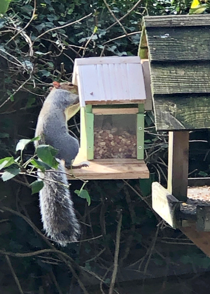I can now carefully make my way down the garden to a sunny corner where I’ve been enjoying the daisies, dandelions, bluebells and apple blossom. Our garden is beautifully wild and unruly around the edges. The visiting wildlife seems to prefer it that way. Every day, the squirrels and birds visit the feeders. Every night we watch the badgers eating peanuts and peanut butter on wholemeal bread.
