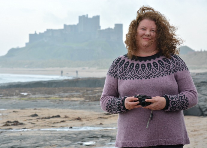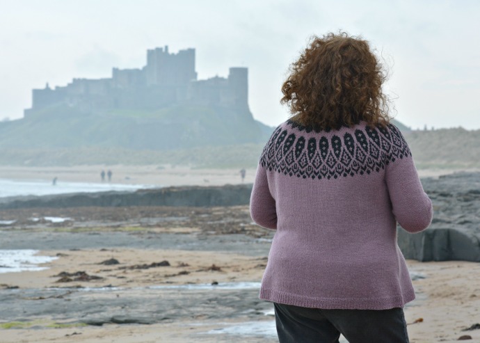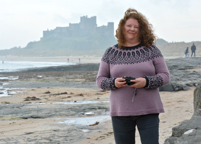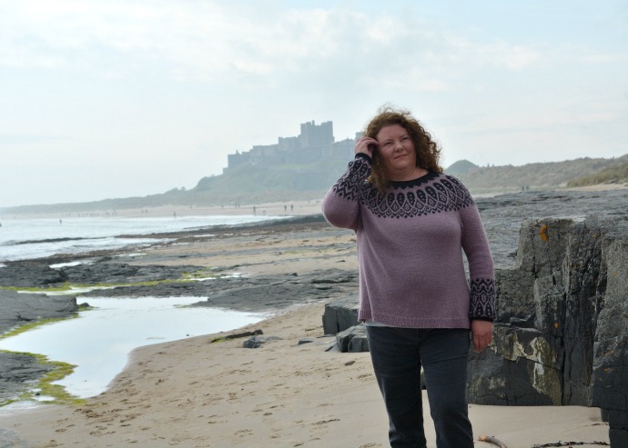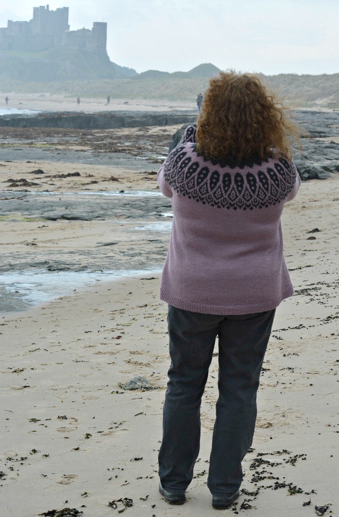 By the time we’d finished taking photographs and called a halt, I was shivering, but I’d my heart set on photographing Sipila with Bamburgh Castle as a backdrop. Neil was wearing a warm jumper, coat, scarf, hat and fingerless mitts (it is best if the photographer isn’t too cold). I was wearing my lightweight Sipila sweater with a lightweight tee shirt underneath and the wind just seemed to cut through to the skin. Neil took some great shots!