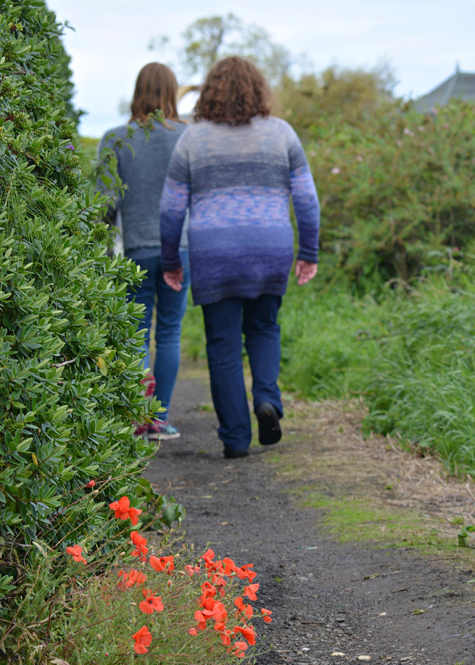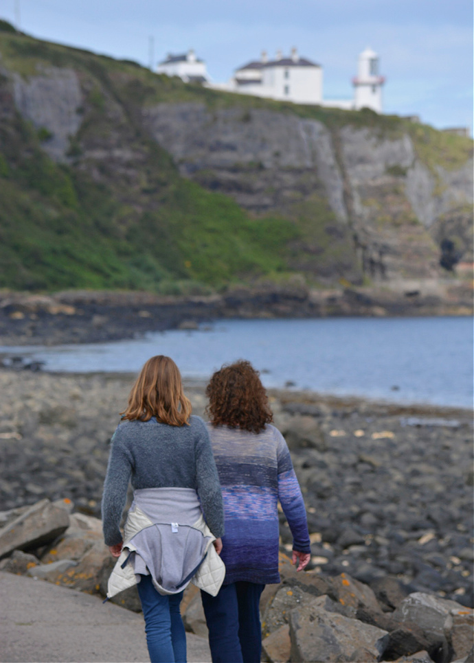 In the afternoon after visiting the yarn festival, we all went for a walk to the Blackhead Lighthouse, or at least, Neil and our niece Mya walked to the Lighthouse whilst, I stayed on the path by the shore and relaxed on a bench and enjoyed watching the ships passing on Belfast Lough. I also had a lovely view of the Blackhead Lighthouse on top of the cliff!