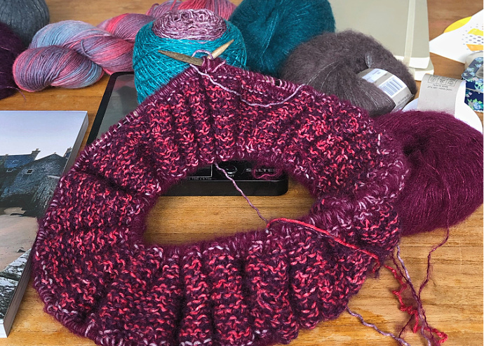 I’d intended knitting a Moebius Cowl for a long time, and with the sad passing of the innovative and inspirational Cat Bordhi, decided that this was the time to do so. I wanted a relaxing knit (although I can’t honestly say the Moebius cast-on was relaxing – although Cat Bordhi explains it very clearly in her Intro to Moebius Knitting video) but I’m enjoying knitting and purling the long long rounds while feeling like I’m really taking part in the virtual Shetland Wool Week experience.
